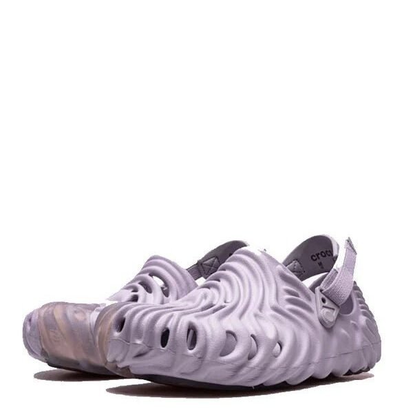 The Salehe Bembury x Crocs Pollex Clog ‘Urchin’ launched in May 2022 as part of a three-piece pack. This pair features a pale shade of lavender throughout the molded foam upper, highlighted by wavy concave ridges inspired by Bembury’s fingerprints. The textured lines extend to the outsole for multi-directional traction. Ventilation ports are placed in high-heat areas throughout the vamp for improved breathability, while a removable heel strap delivers a secure fit.